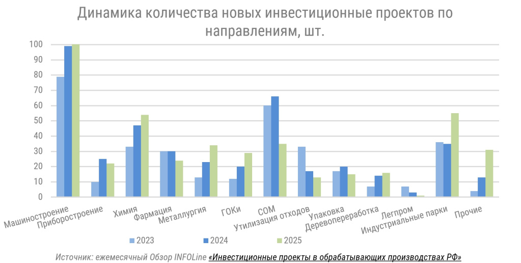 Следующие выводы сделаны благодаря регулярному мониторингу отрасли – «Инвестиционные проекты в промышленном строительстве РФ» – специалисты INFOLine ежеквартально фиксируют параметры и статус новых и реализующихся проектов по всей стране. Это позволяет увидеть формирующиеся тенденции раньше, чем они становятся очевидны всем участникам отрасли.