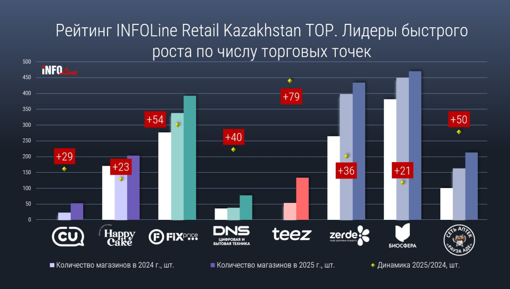 По данным аналитического агентства INFOLine, торговая сеть DNS вошла в TOP-10 наиболее динамично развивающихся игроков розничного рынка Казахстана, продемонстрировав один из самых заметных темпов роста.