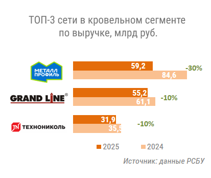 Кровельные, фасадные и изоляционные материалы. ТОП-3 в сегменте по выручке: Компания Металл Профиль, ПО Металлист, ООО (Grand Line) и УТС ТехноНИКОЛЬ.